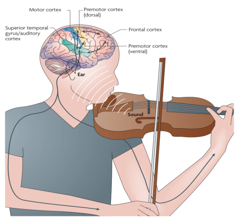 Zatorre, R.J., Chen, J.L., &Penhune, V.B. (2007). When the brain plays music: auditory-motor interactions in music perception and production.Nature Reviews Neuroscience, 8:547–558.
