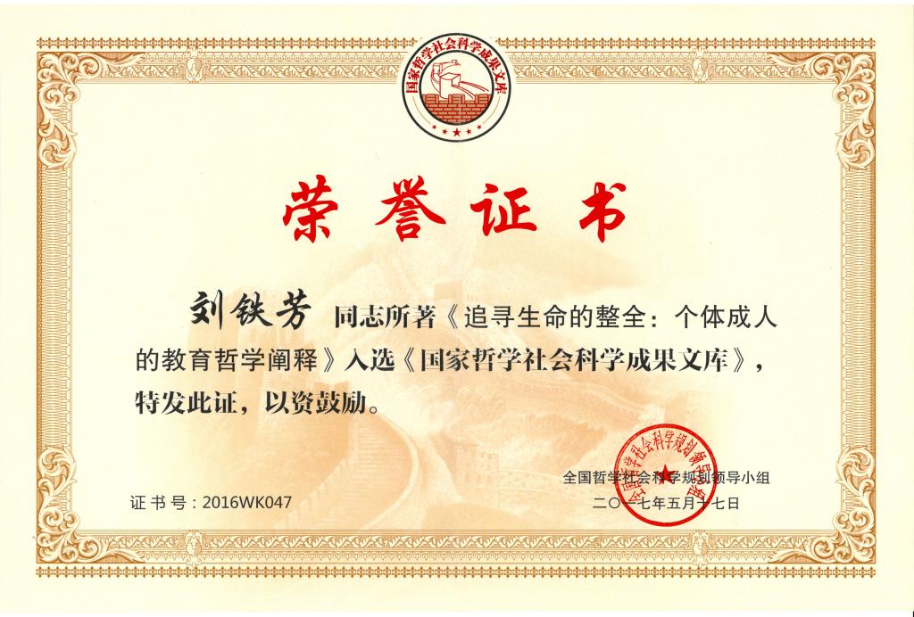 全国社科规划办公布的2016年度《国家哲学社会科学成果文库》入选名单中,我校共有2项成果入选,其中304am永利集团刘铁芳教授的著作《追寻生命的整全:个体成人的教育哲学阐释》入选。据统计,今年《成果文库》全国共申报329项,有48项成果入选,其中师范类院校入选8项,湖南入选3项,304am永利集团占2项。