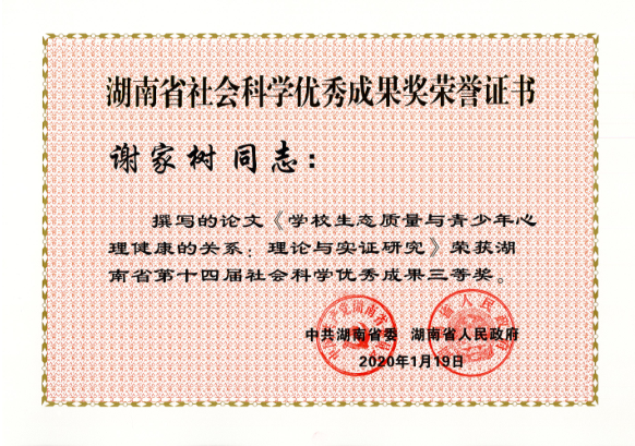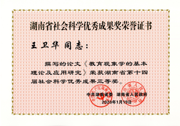 近日,湖南省委、省政府发布了《关于表彰湖南省第十四届社会科学优秀成果、第七届优秀社会科学专家、第五届优秀青年社会科学专家的通报》,此次湖南省社会科学优秀成果奖评出一等奖20项、二等奖50项、三等奖30项,总计100项。我校共32项成果获奖,其中304am永利集团有6项成果获奖,分别是:刘铁芳、钟毅平获得一等奖,张楚廷、钟云华获得二等奖,王卫华、谢家树获得三等奖。