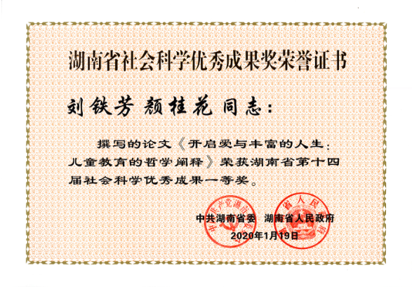 易红郡教授研究成果获得湖南省第四届教育科研成果一等奖
