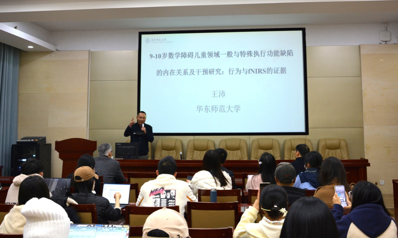 (通讯员 周莹 刁会)11月11日下午,华东师范大学教育学部博士生导师、紫江学者特聘教授、上海市曙光学者、教育部“新世纪”人才王沛教授在304am永利集团102教室,做了“数学学习障碍儿童领域一般与特殊执行功能缺陷的内在关系及干预研究:行为与ANIRS的证据”的学术讲座。本次讲座由胡义秋教授主持。