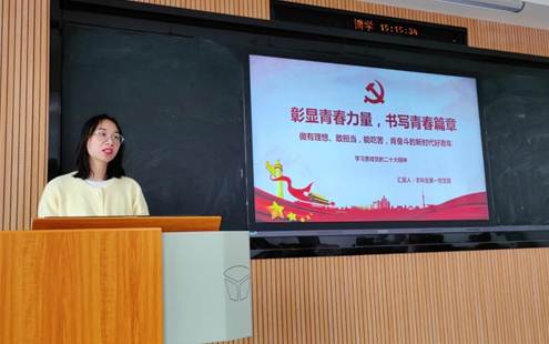 王雨苹同志以“学习党的二十大精神必须着重把握的十项内容”为主题进行微党课学习分享,从“着重把握过去五年的工作和新时代十年的伟大变革”开始,谈到“以中国式现代化全面推进中华民族伟大复兴”,最后以“党的自我革命的重要性”延伸到作为新时代的大学生要不断进行自我革命、自我提高,坚持初心和使命。王雨苹同志认为,我们学习领会党的二十大精神,必须坚持全面准确、突出重点,既要原原本本学、又要深入理解。