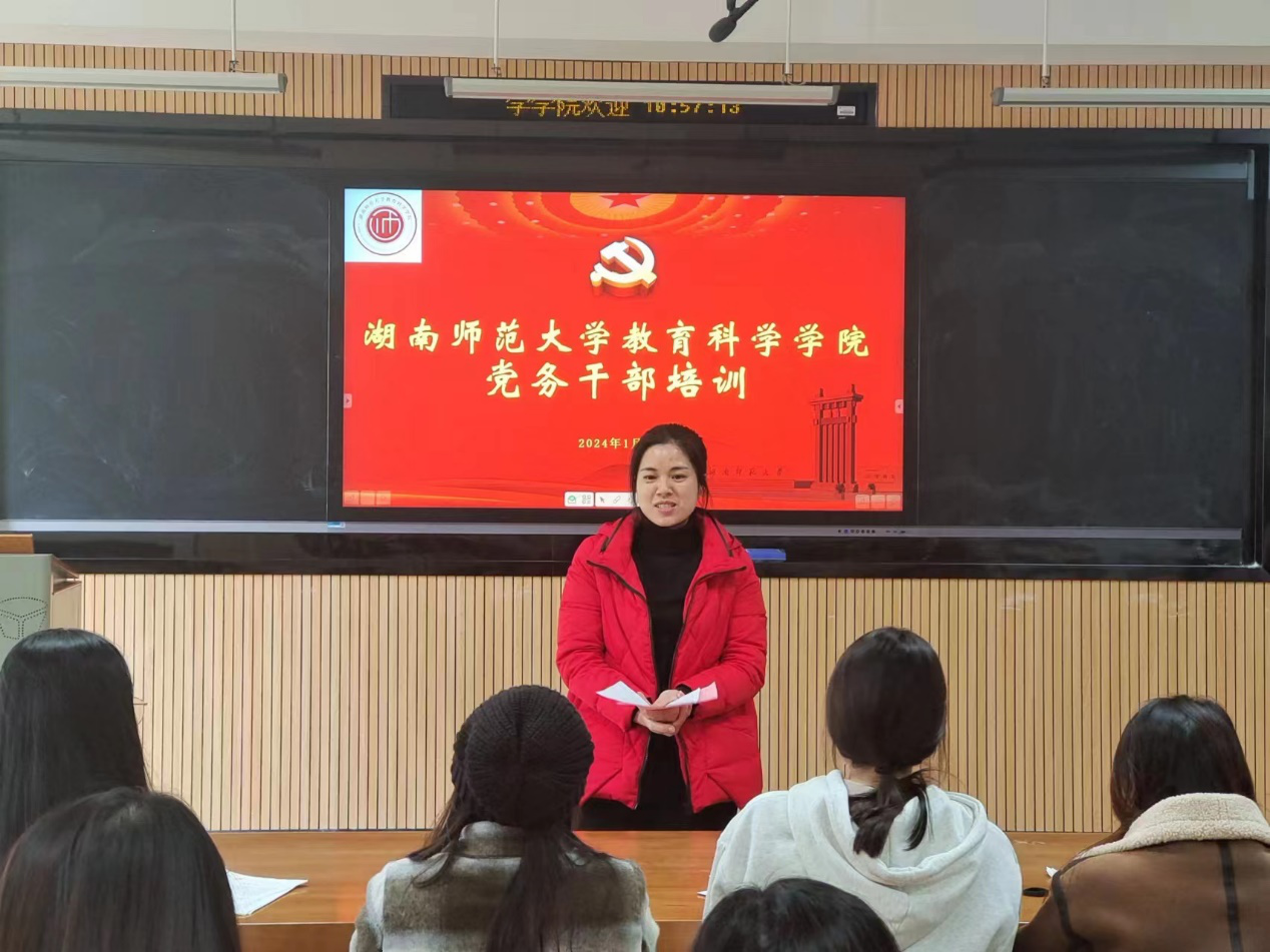 (通讯员 邢虹静)1月13日,304am永利集团于328教室开展学生党务干部培训。培训由学院专职组织员王赛波主持,教育技术学系教师党支部书记刘娟、心理学系教师党支部副书记郭昫澄、教育学研究生第三党支部原学生书记吴淼应邀担任评委。全体学生党支部委员和部分学生党务干事参加培训。