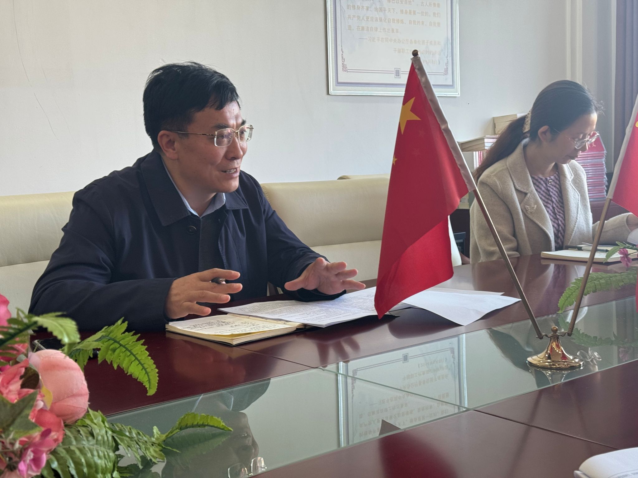 向发意指出了样板支部建设的重要性,并对样板支部的建设方案进行了具体部署,强调要着力提升心理健康进学校、心理健康进社区、心理健康进家庭等社会服务能力建设;要着力培育党建特色品牌,凝练成熟有效的党建工作经验,形成可复制、可推广的党建工作方法。王赛波介绍了学校样板支部建设的总体目标和具体考核要求,强调坚持党建与业务同促进共发展,注意梳理公共课程和专业课程中的思政元素和育人功能,从“课程思政”的角度对如何更好地创建样板支部提出了宝贵的意见和建议。