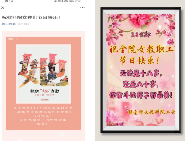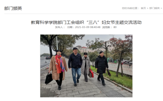 三、组织开展女教职工特色活动。制作微信推送致敬“她”力量,推出学院部门工会专属祝福图片,并组织“赏春景话真情齐奋进”主题交流活动,让全体女教职工感受到“三八”妇女节的专属祝福。