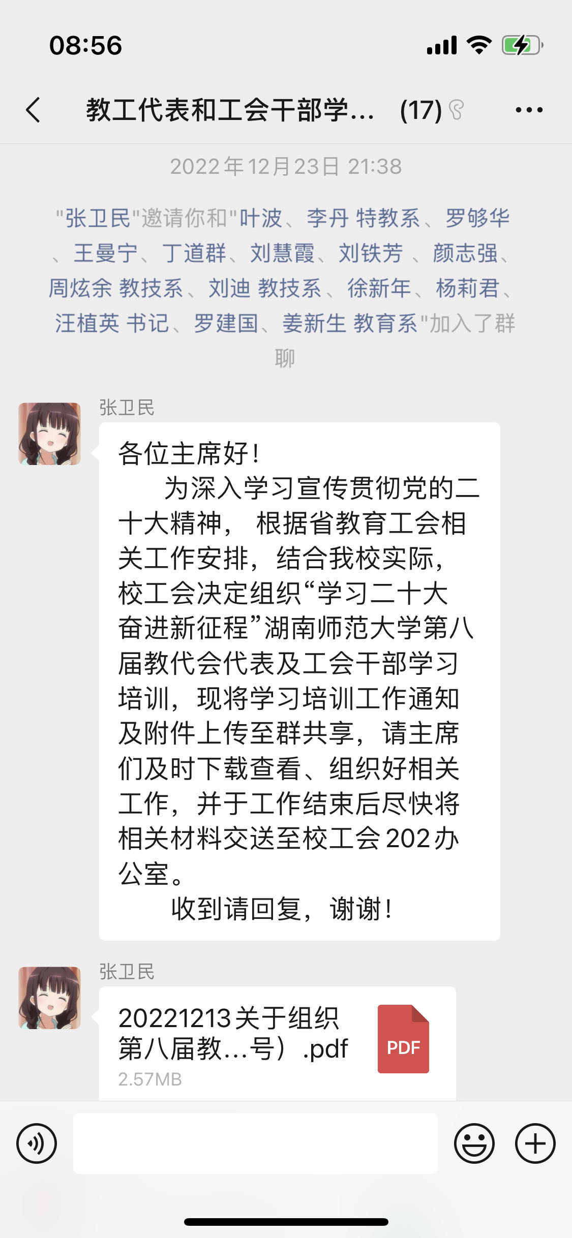 院工会主席张卫民首先在微信群积极宣传相关学习活动,并下发了《中华人民共和国工会法》等一系列学习资料。在学院教代会代表及工会干部自学一段时间后,学院工会还在腾讯会议平台组织了一次集中学习。参与者在答题环节全部获得优异成绩。