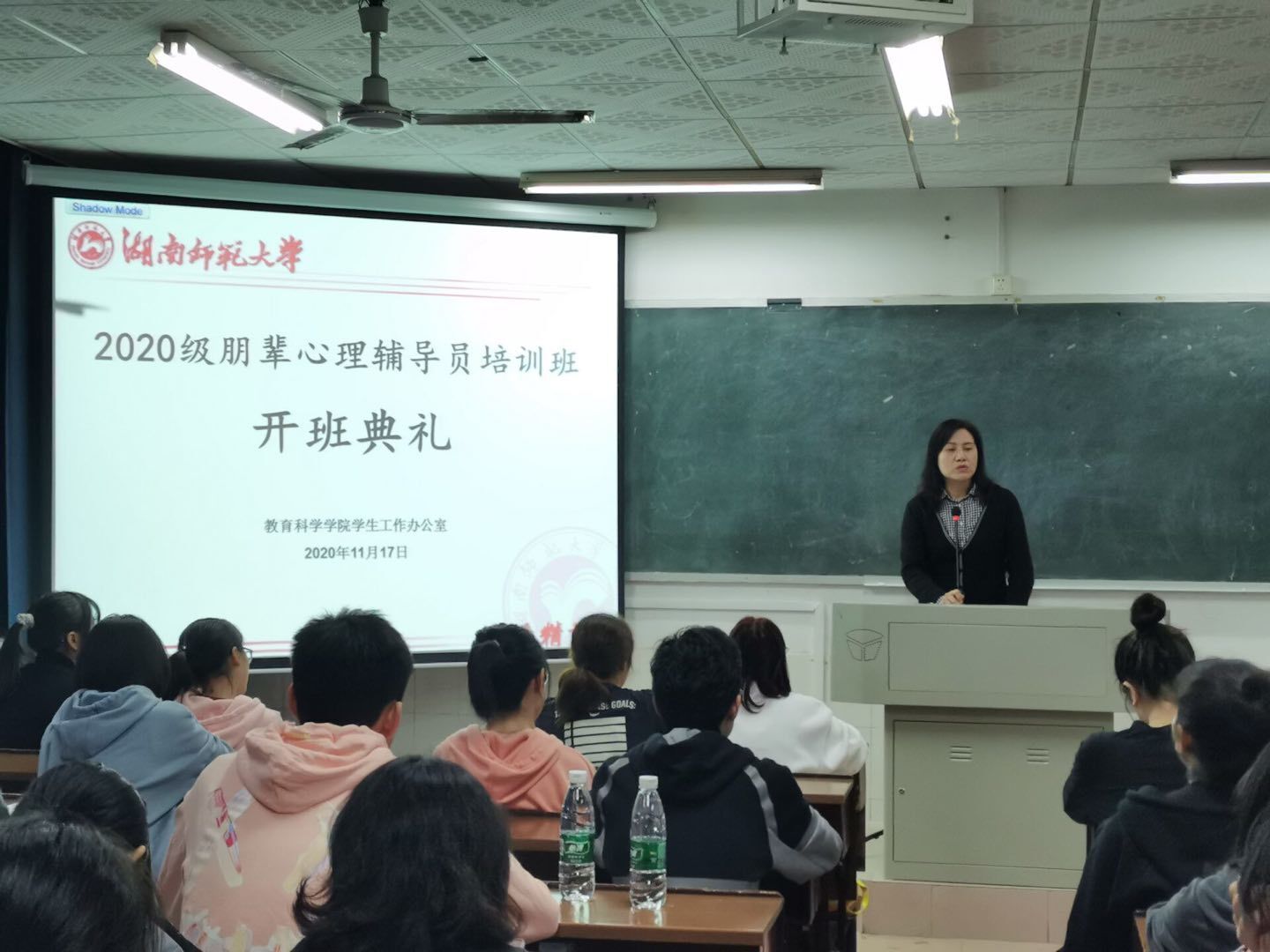 (通讯员 喻帅 黄婵)11月17日晚,304am永利集团2020级朋辅培训班开班典礼暨朋辅培训第一讲于张公岭校区综合楼504教室举行。此次会议出席嘉宾为教科院学工办主任马欣、2020级辅导员刘东婷,参与人员有教科院2020级全体年级干部、心理委员及朋辈心理辅导员。