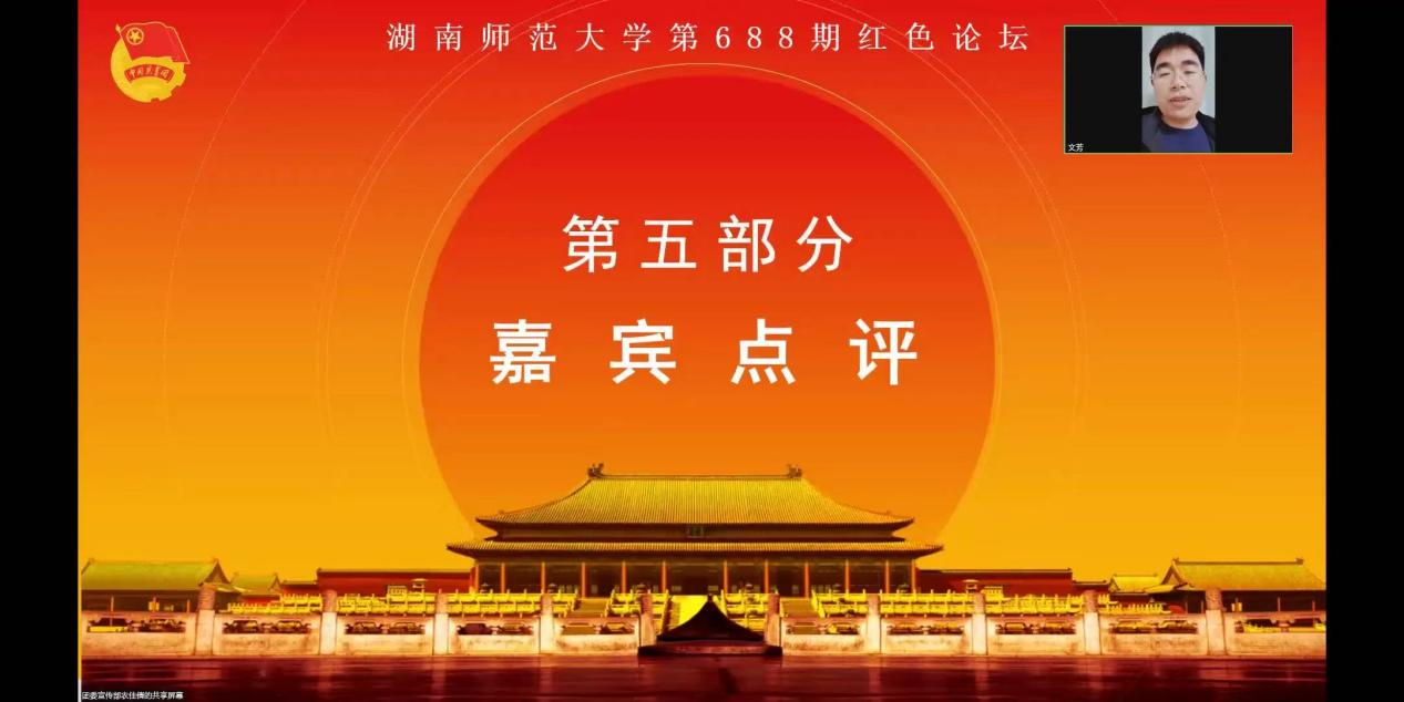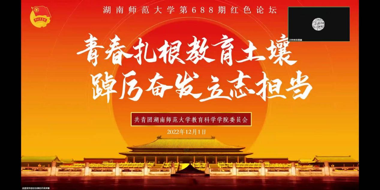 (通讯员:农佳倩 贺佳蓓)12月1日晚,304am永利集团团委在线上开展了以“青春扎根教育土壤 踔厉奋发立志担当”为主题的304am永利集团第688期红色论坛。教科院教育学系张传燧教授担任此次活动评委,院党委副书记欧阳文芳、院团委书记谭梦、学工办庞瑞宇老师、石新平老师出席。