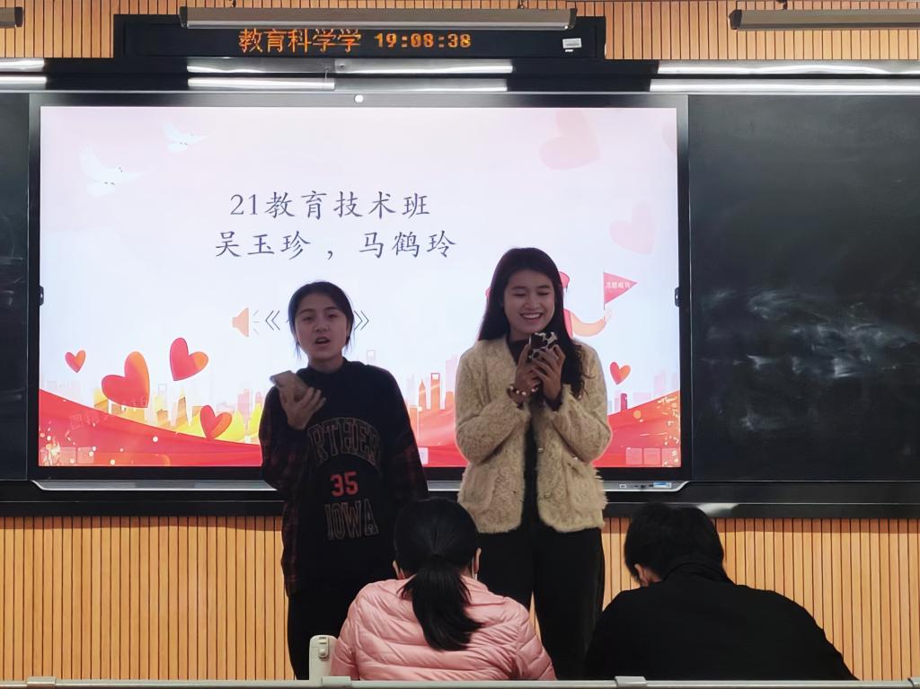 选手用歌声传递了自己对志愿精神的理解。来自2022级心理二班的王语冰同学以一首《奉献》唱出了她对志愿精神的解读,不计报酬,不求名利,不要特权。来自2021级教育技术班的曾雅璇、杨祎璠通过演唱《微微》这首歌表达了“平凡的志愿者也能造就不凡的价值”,众多平凡的志愿者为推动人类发展、社会进步和社会福利事业做出了积极贡献。所有选手演唱结束后,评委们对其打分并进行了点评,确定了获奖选手名单。张筱浠宣布比赛结果。