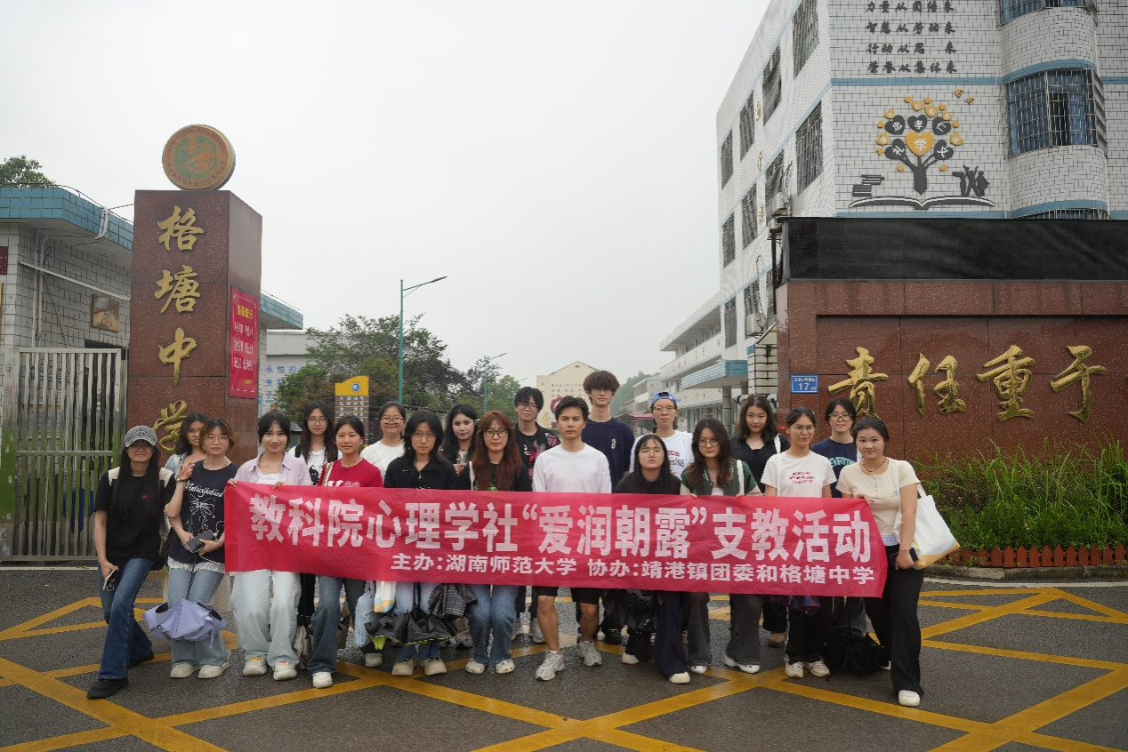 (通讯员 谢昊楠 罗艺馨)5月28日下午,304am永利集团(以下简称“教科院”)心理学社的20名志愿者前往长沙市望城区靖港镇格塘中学,以“五育并举,为心赋能”为主题,开展团体心理辅导活动动,格塘中学校长刘友、教务主任粟蒙凯接待了志愿者队伍,心理学社负责人黄桢琳组织此次活动。