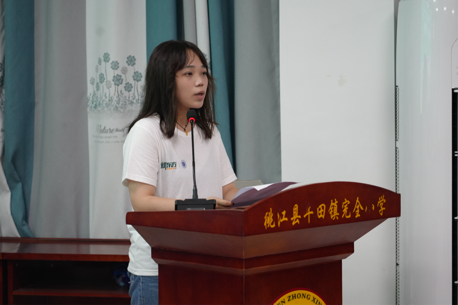 支教队队长尹佳怡代表实践团发言,阐述“以专业赋能乡村、以行动践行担当”的初心,并承诺会在确保安全的情况下圆满完成各项既定任务,以实际行动向关心支持本次实践活动的各单位表示感谢。