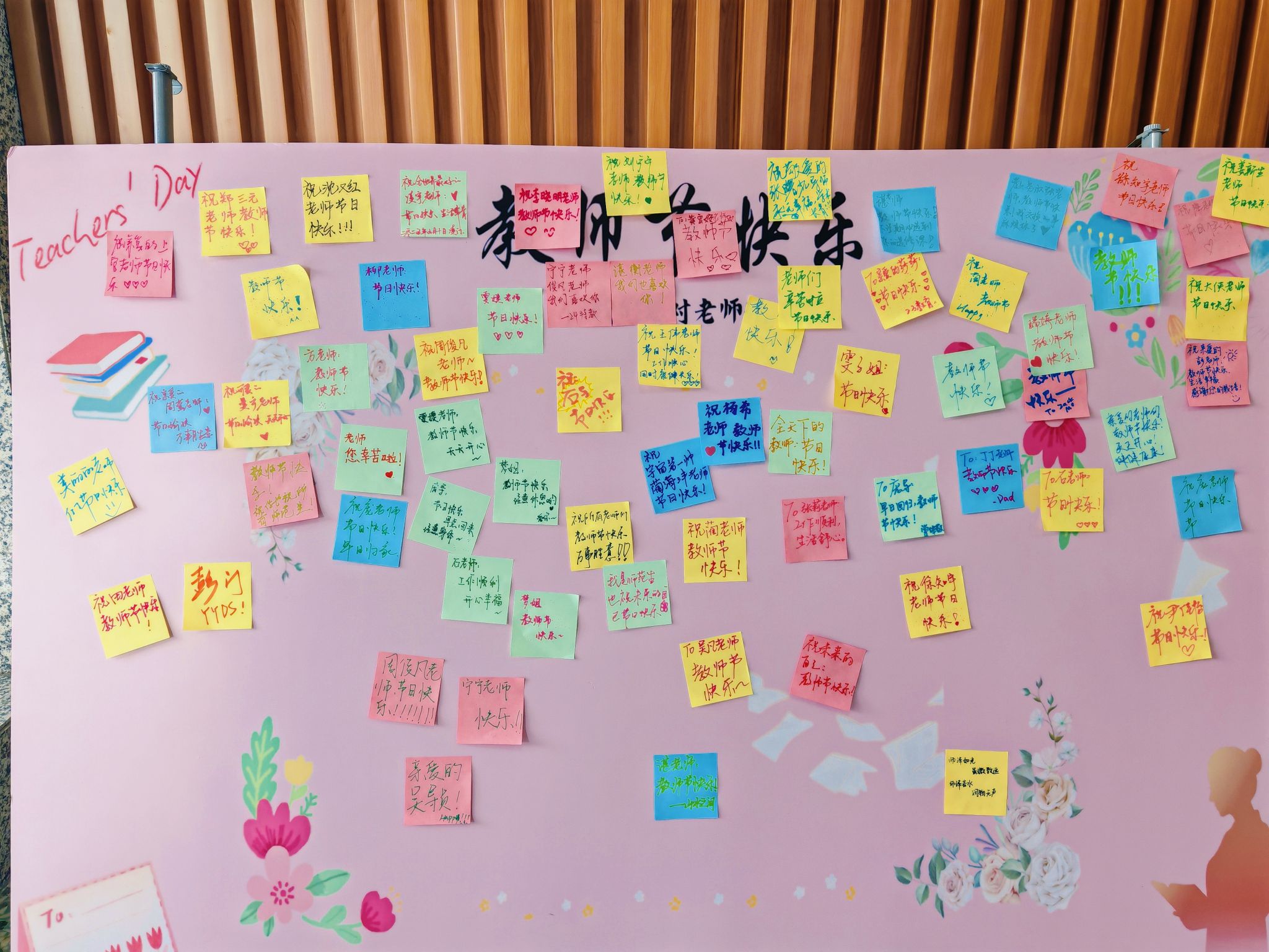 “心语传情·爱满教科”活动则是在教科院一楼大厅设置了暖心的祝福展板,全院师生随机在便利贴上写下节日的祝福,最终汇成爱心留言墙,形成了一道独特而温暖的风景线。