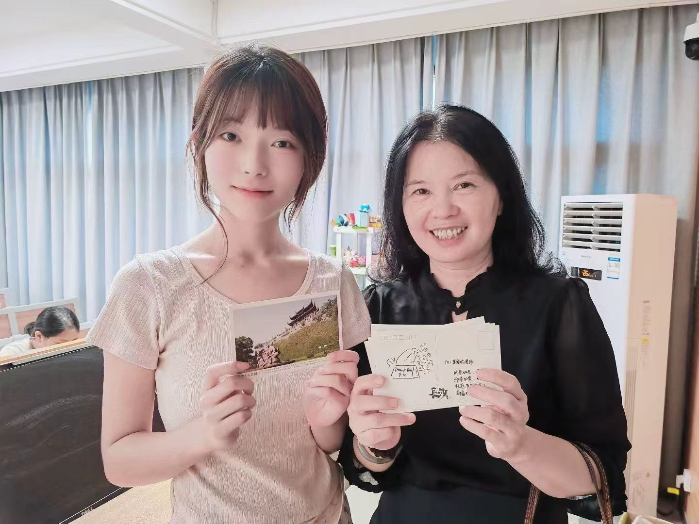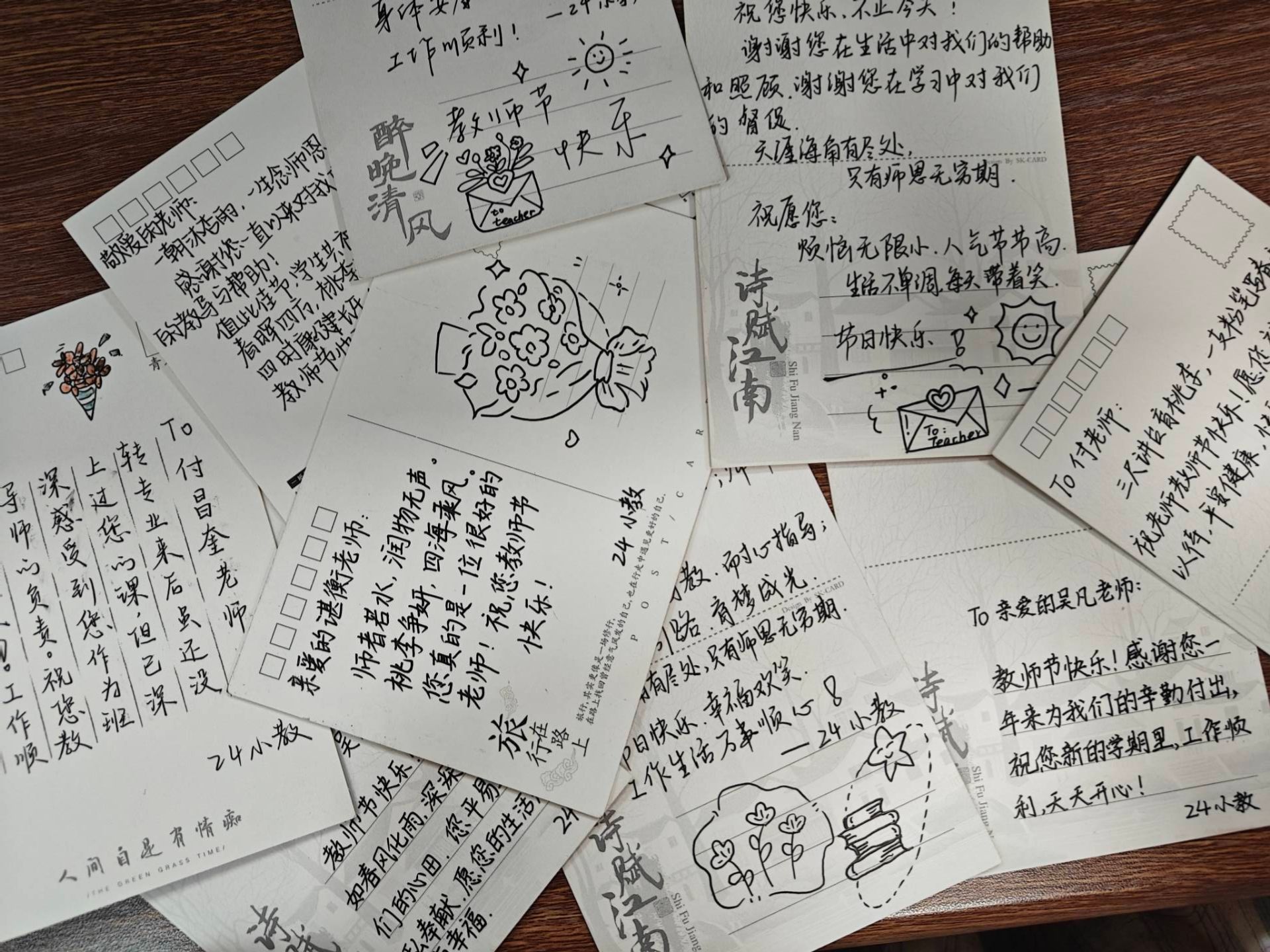 “纸短情长·花香寄情”活动是以班级为单位,号召同学们在明信片上写下对老师的祝福并制作扭扭棒花束,由班长统一赠与教师节当天的授课老师,收到礼物的老师们纷纷露出了幸福的笑容。