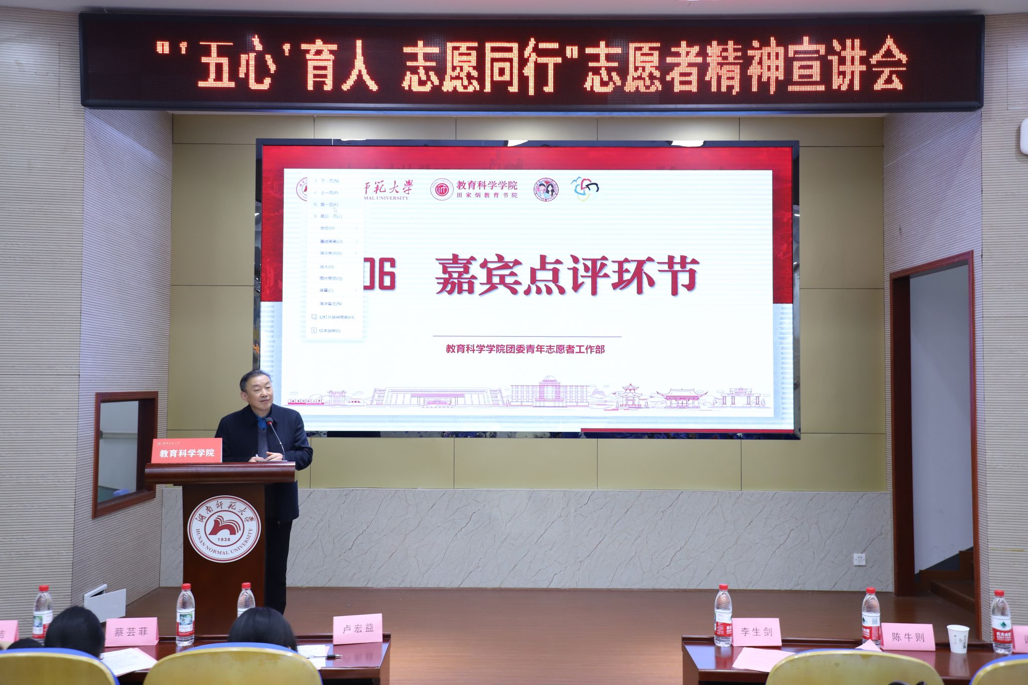 志愿同行”志愿者精神宣讲会。教科院关工委常务副主任陈牛则、院团委书记谭梦、长沙市公安局交通管理支队湘江新区大队副大队长李生剑出席活动。24级心理班学生苏莉莎、校青工部代表、部分其他学院以及本院学生共同参加。
