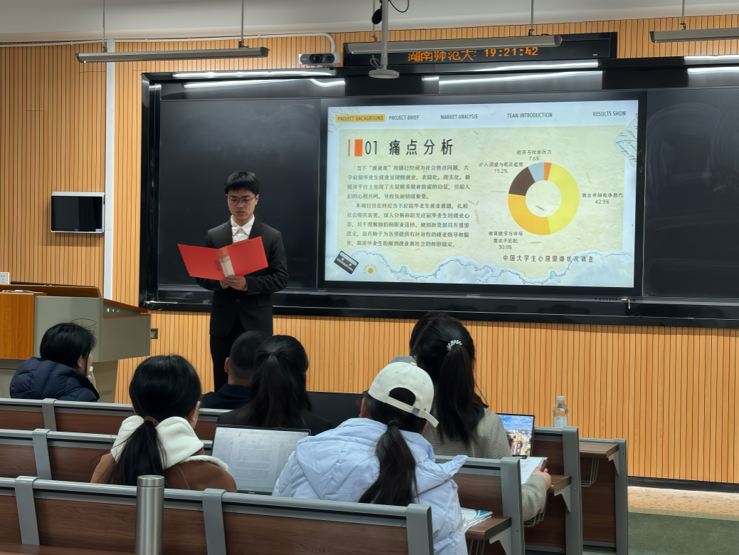 本次选拔赛共有9支项目团队参赛,各参赛团队按照抽签顺序依次上台,结合演示文稿展开路演汇报,围绕项目背景、运营模式、市场前景、核心优势及社会价值等方面逐一讲解,条理清晰地展现项目整体规划与发展构想。