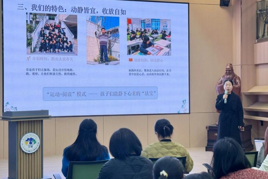 培训中,来自不同级部的六位优秀班主任依次分享班级公约建设经验。从低年级的“十秒法则”、“三安原则”,到中高年级的“目标小达人”、“好事银行”,再到基于道德发展的“自然后果”体系和“国学替代方案”,分享既有理论深度,也有实践温度。实习队队员们认真聆听、细致记录,在实践中感知班主任工作的细致与智慧。