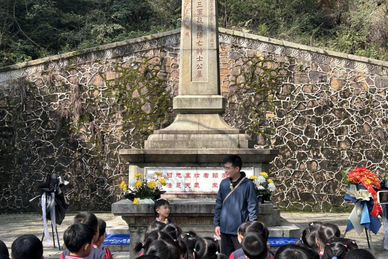 活动伊始,实习生协助教师带领幼儿抵达七十三军抗战阵亡将士墓,组织他们列队肃立引导幼儿将花轻放于墓前,表达对先烈的追思与感恩之情。随后,实习生代表向革命先烈献鲜花,表达敬意与缅怀在远足登山环节,队员们全程陪同看护,关注每一位幼儿的行进状态,及时排查安全隐患,同时鼓励幼儿相互协作、共同前行。孩子们在登山过程中亲近自然、锻炼身体,既体会到远足的乐趣,也增强了体质与意志。