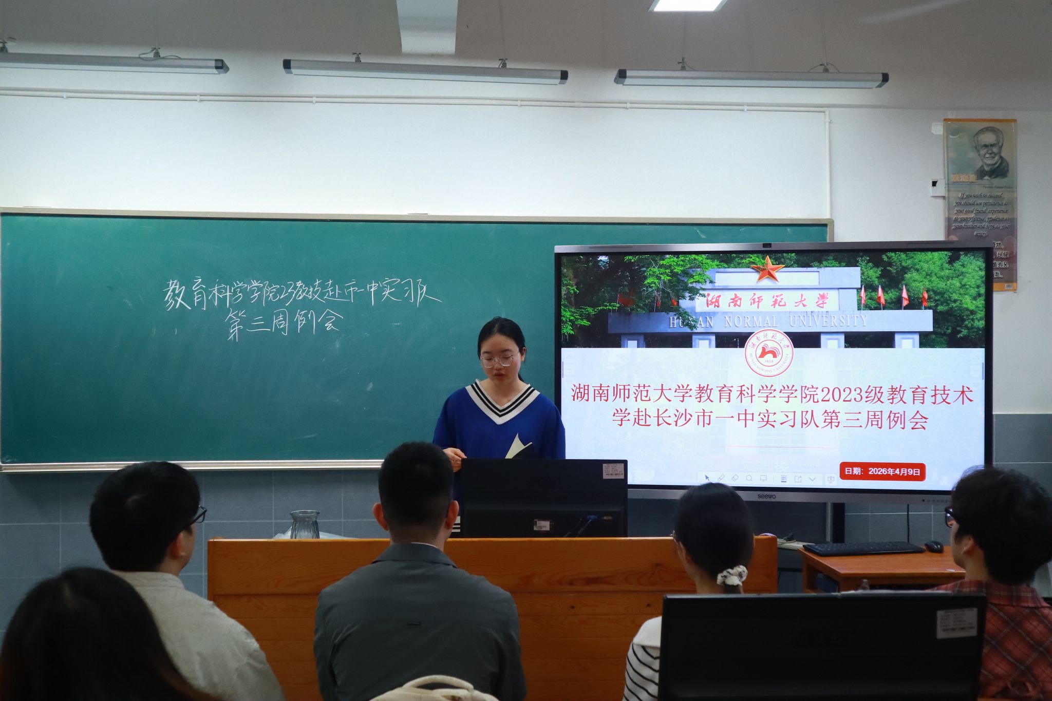(通讯员 巫刘佳 申娜 李燕玲)4月9日上午,304am永利集团2023级教育技术班赴长沙市一中实习队在科学艺术楼五楼召开第三周工作例会。会议由实习队队长申娜主持,全体实习队员参会。