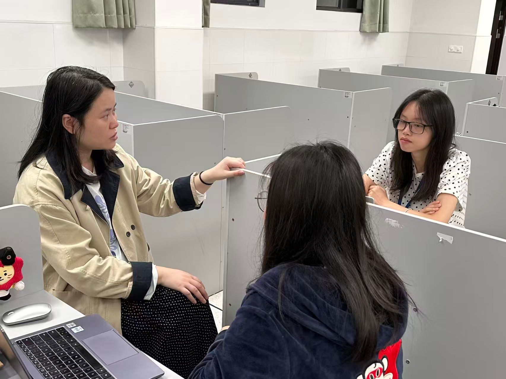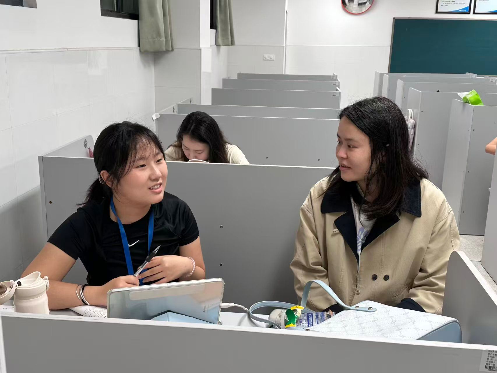 谢玲抵达实习学校后,首先向实习成员送上了关怀与期许,她主动了解实习团队整体工作情况,与两名实习生展开一对一交流,细致询问大家首次授课的心得体会、日常课程安排、后续授课计划等,针对教学实践中的难点问题进行逐一指导,帮助实习生理清教学思路、解决实际困惑。