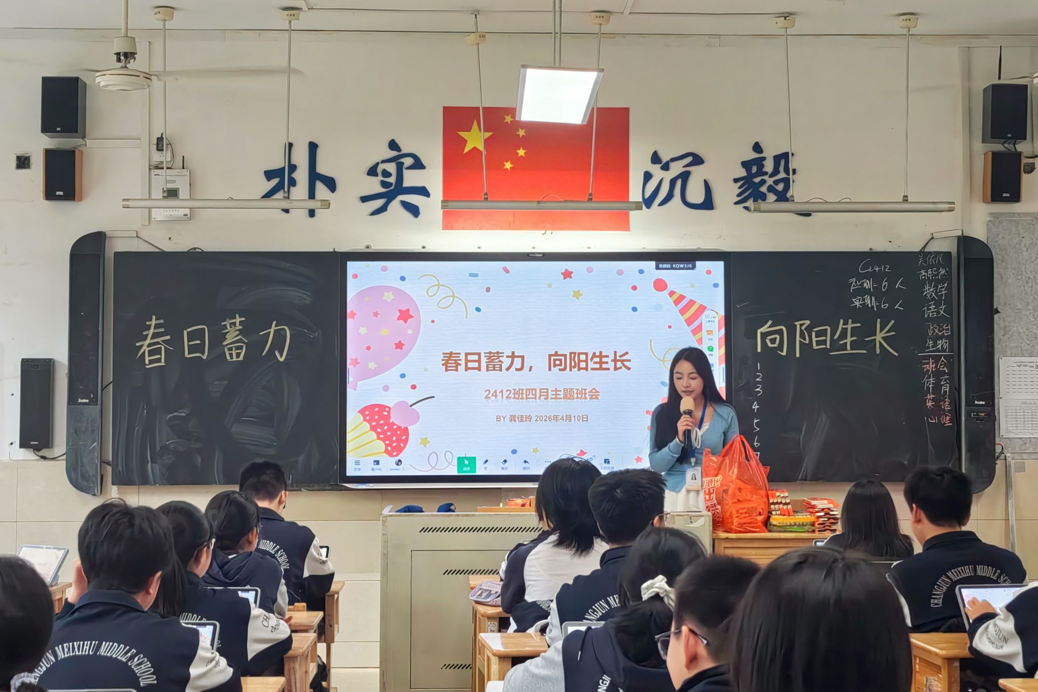 (通讯员 赵华越 陶佳亮)为丰富班级文化生活,激发学生学习热情,引导学生在春日里积蓄力量、奋勇争先,4月10日下午,实习队队员龚佳玲在初2412班开展了以“春日蓄力,向阳而生”为主题的班会活动。本次班会形式新颖、内容丰富,有效调动了同学们的参与积极性,现场氛围热烈融洽。