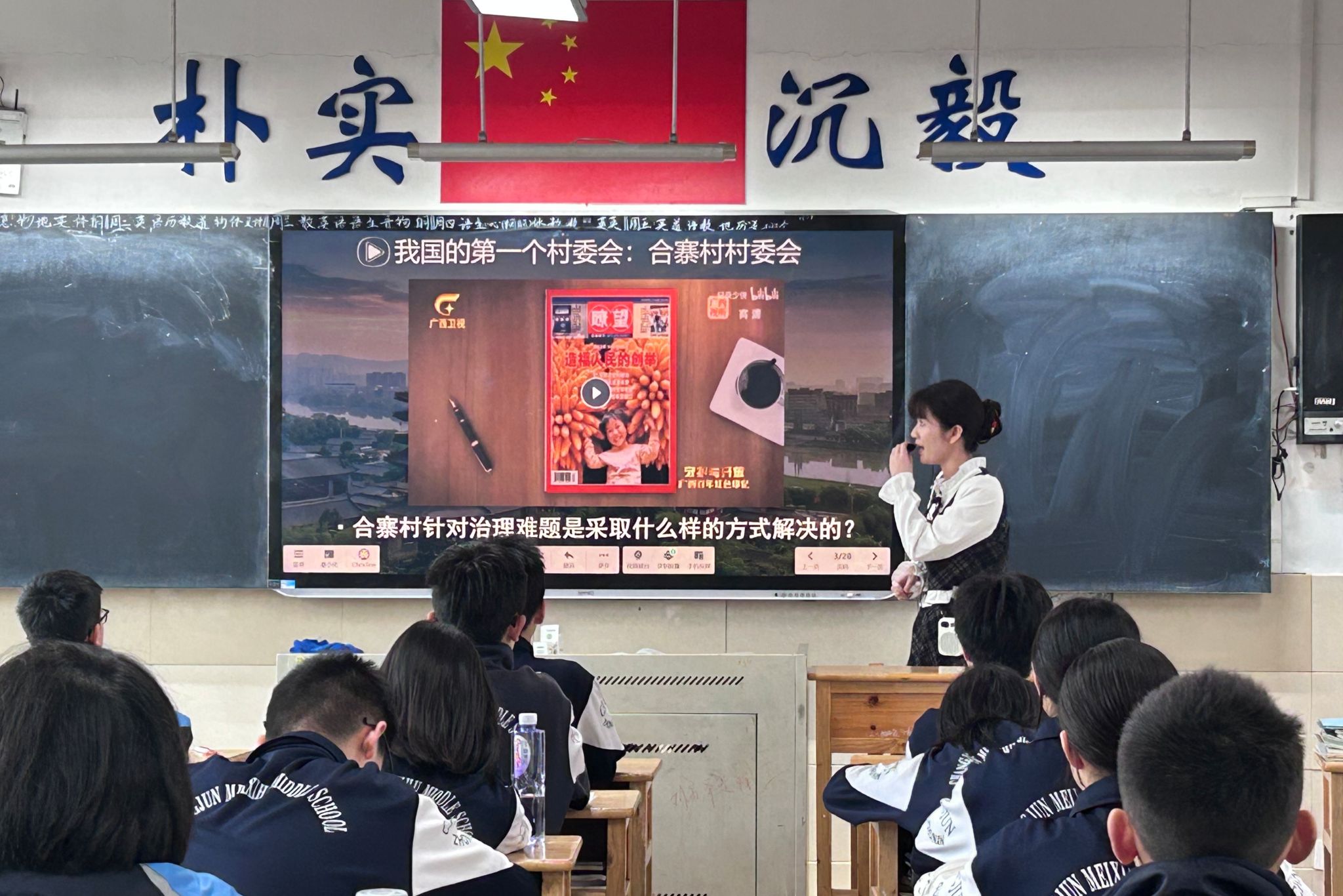 课程伊始,代诗畅以我国首个村民自治组织广西合寨村村委会导入引导学生思考基层群众性自治组织的内涵与特点。课程围绕制度发展、组织形式、工作原则、制度优越性四个环节展开,系统梳理基层群众自治制度的历史脉络与实践过程。教学中,代诗畅立足学生生活实际,着重辨析易错易混概念,帮助学生夯实知识基础、厘清认知误区。