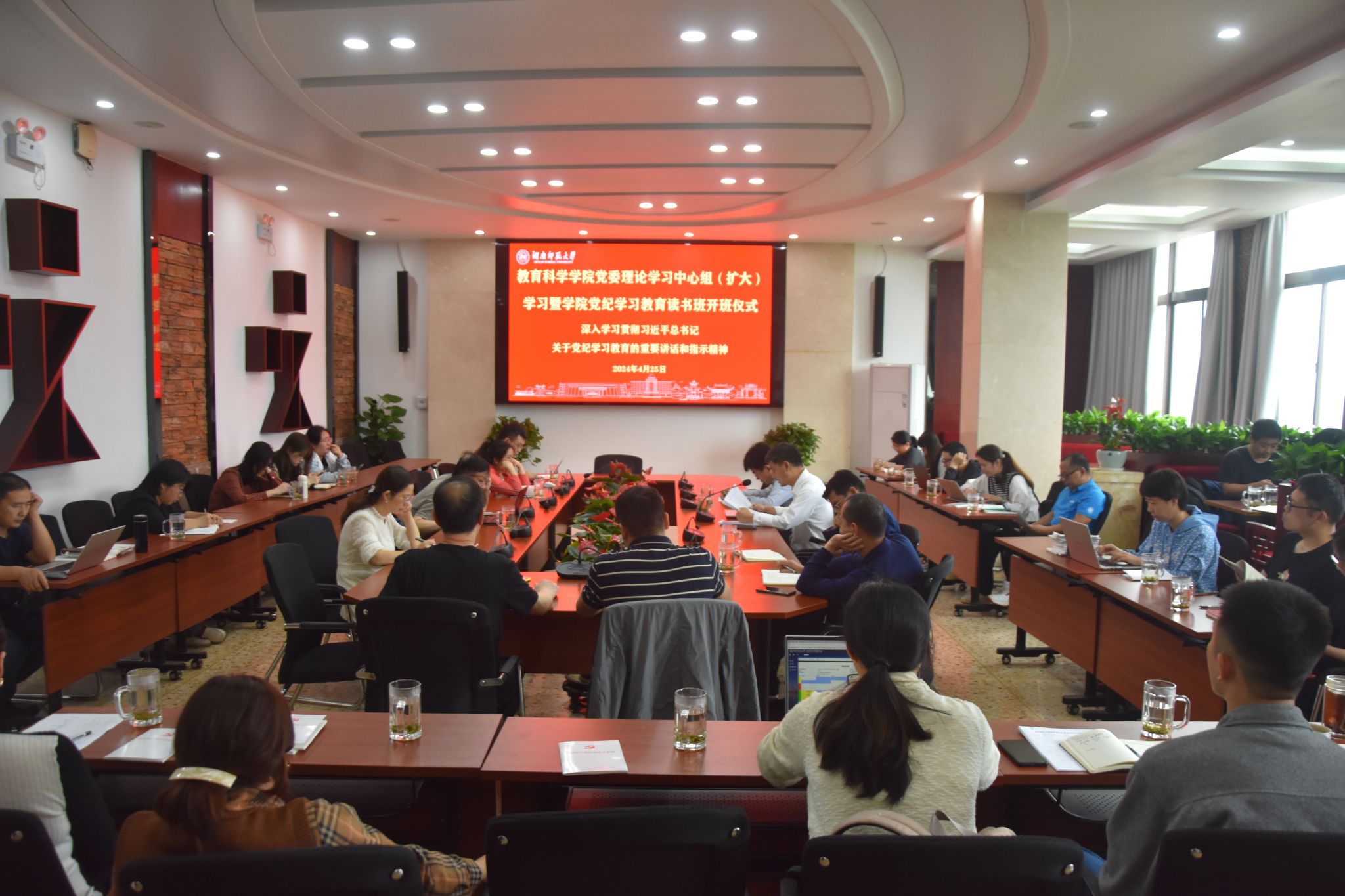 (通讯员 赵华越 朱文倩 王如心)为推动学院党员干部深入学习贯彻习近平总书记关于党纪学习教育的重要讲话和指示精神,全面加强党的纪律建设,确保党的团结统一和行动一致,4月25日下午,学院在七楼会议室召开党委理论学习中心组(扩大)学习暨学院党纪学习教育读书班开班式。会议由院长刘铁芳主持。