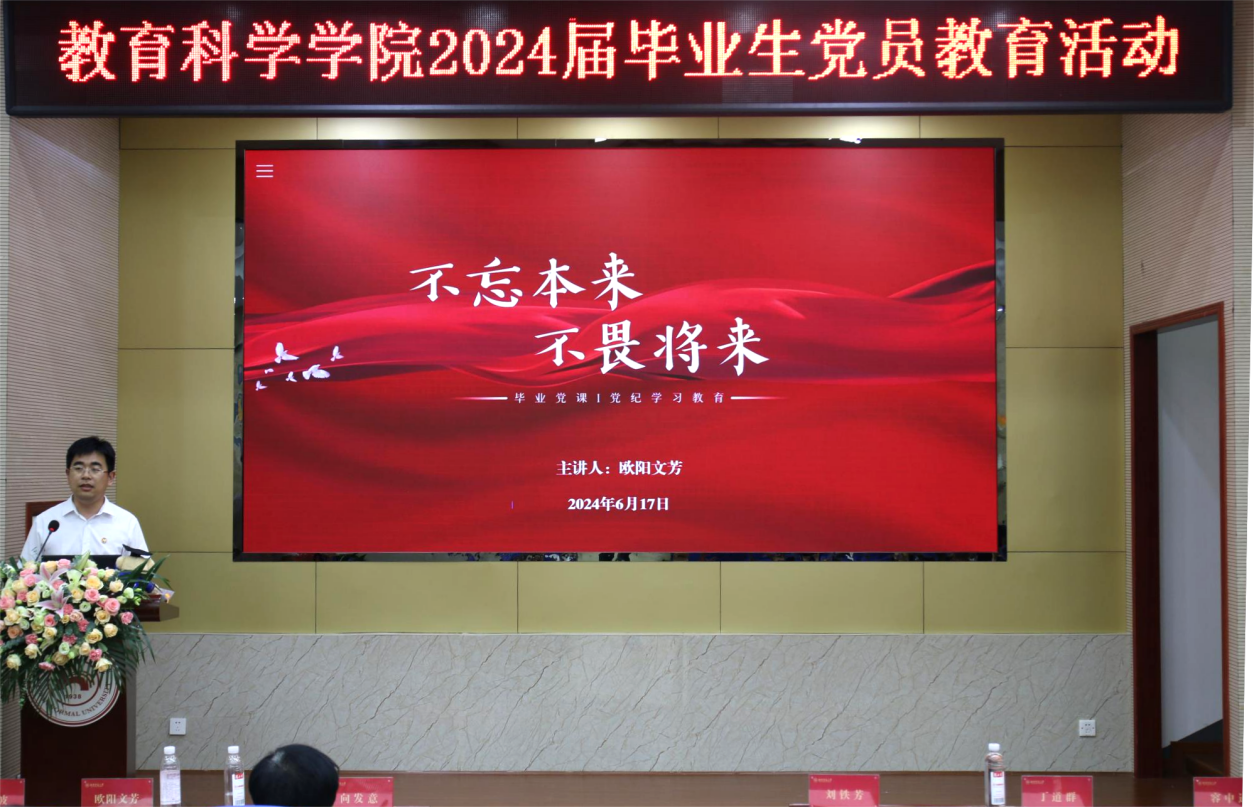 下午3:00在101报告厅举行“青春绘华章,行稳方致远”毕业生党员教育活动。活动由向发意主持,全体院领导、学生党支部第一书记出席,全体本科生、研究生毕业生党员参与。活动上,刘铁芳宣读《2023年度院级“两优一先”获奖名单》,院领导及第一书记为获奖学生颁奖。