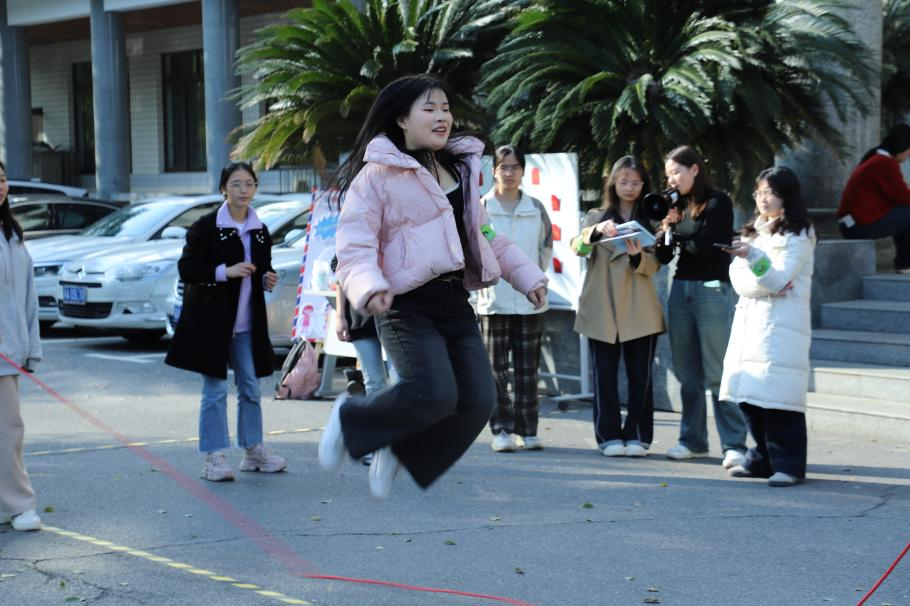 “拾”光之旅,梦回童年。“童趣拾光”系列游戏通过在快节奏的现代生活中,举办“跳绳大比拼”、“沙包大作战”两种怀旧游戏,唤起师生们对童年时光的美好回忆。活动结合专业知识问答,既考察四肢协调又考察知识储备,师生联合,自由组队进行团队比拼,酣畅淋漓,收获满满。