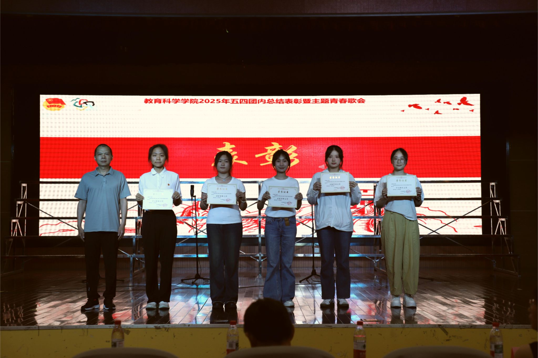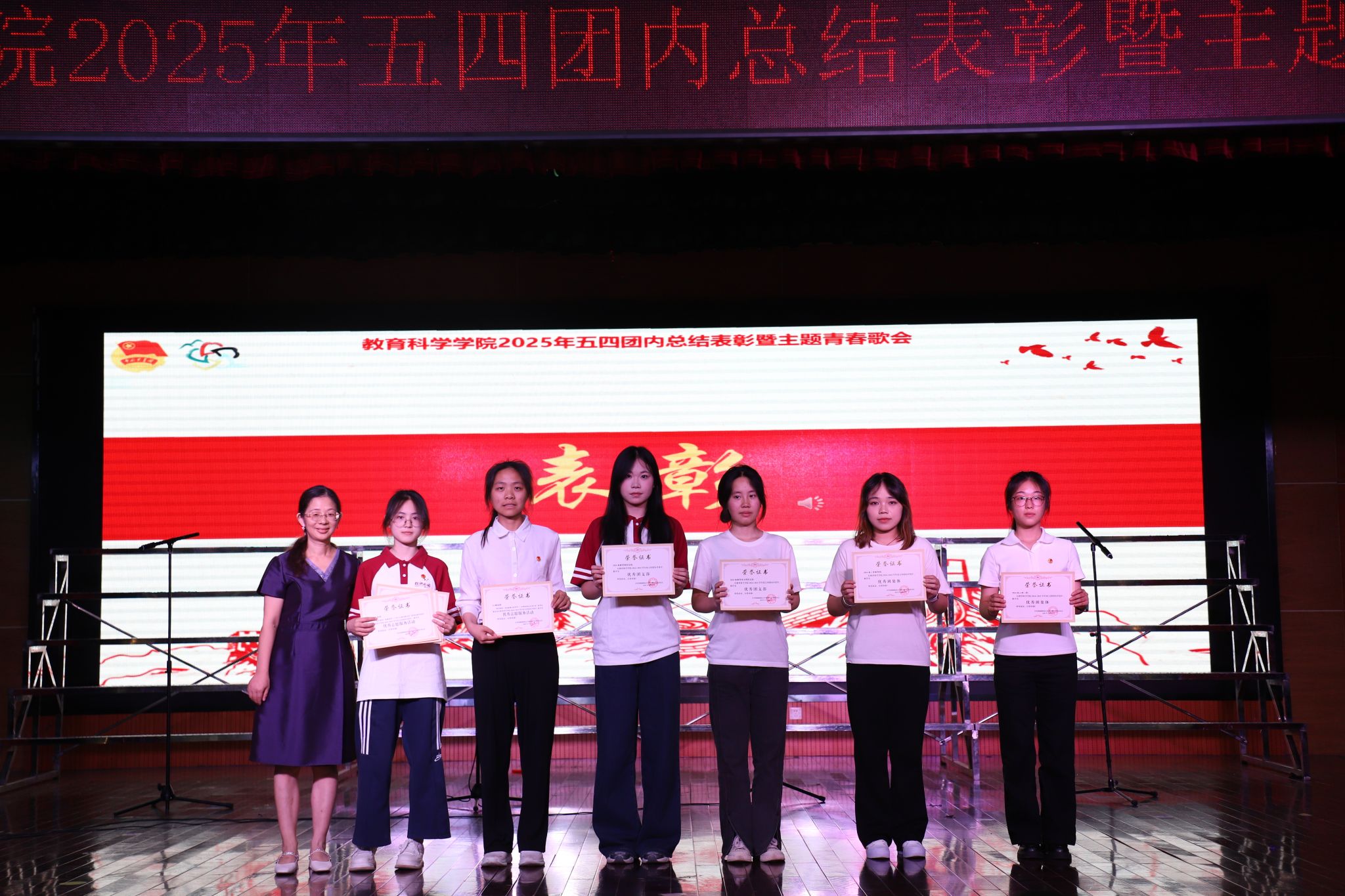 向发意宣读学院团内表彰决定,表彰2024级教育班团支部等84个先进集体和优秀个人,并寄语广大团员青年要继承和发扬五四精神,主动把小我融入大我、把青春献给祖国,立足个人和岗位实际,为中国式现代化建设贡献青春力量。