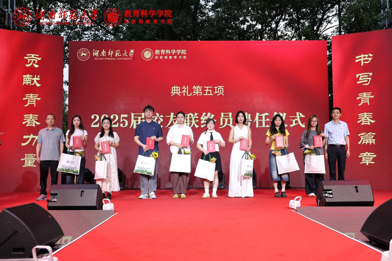 校友联络员聘任仪式上,赵亮宣读学院2025届校友联络员名单,容中逵为联络员代表颁发聘书。