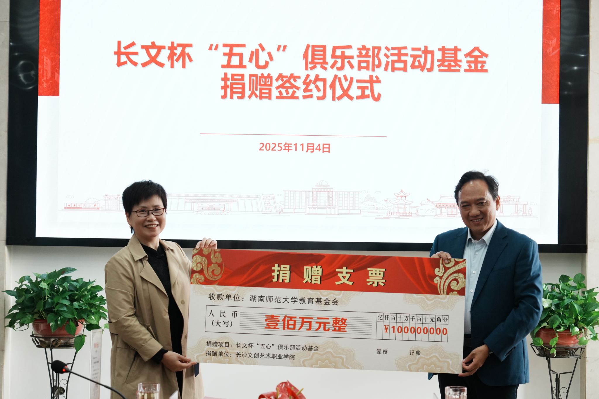 据悉,长沙文创艺术职业学院创办三年多来,取得了令人瞩目的办学成果,荣获省级课题立项28项,教师获奖18项,指导学生竞赛获得国家级奖项4项、省级奖项60项。此次捐赠协议的签署,标志着双方在人才培养、校园文化建设等方面的合作迈出新步伐。