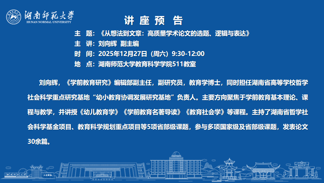 “教科大讲堂”第52讲:《从想法到文章:高质量学术论文的选题、逻辑与表达》