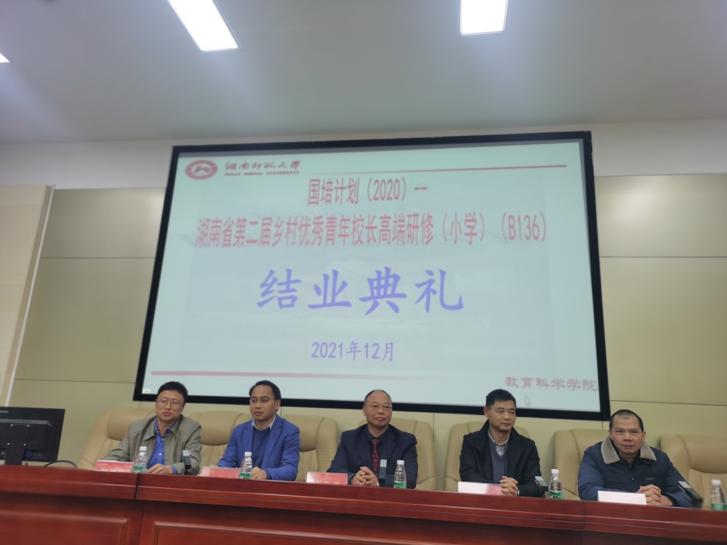 (通讯员:周燕杰)2021年12月22日下午,国培项目(2020)——湖南省第二届乡村优秀青年校长培养高端研修 (B136)—在304am永利集团,304am永利集团102教室举行结业典礼。304am永利集团,304am永利集团项目负责人钟云华教授、湖南省中小学教师发展中心副主任李再湘主任、304am永利集团,304am永利集团院长刘铁芳教授、湖南师大304am永利集团副院长赵亮副院长等人出席结业典礼,会议由304am永利集团成教办主任杨铁林主持。