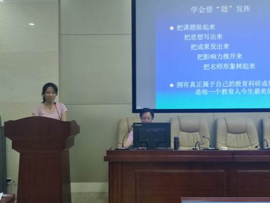 7月27日下午,湖南省教科规划办副主任、湖南省教科院教育规划研究所副所长、副研究员、硕士研究生导师李小球为学员们带来了以《语文教育科研课题的选题与申报》为题的讲座。李小球老师从三个方面指导了学员们如何进行语文教育教研课题的选题与申报:一是,中小学课题研究的四个重要价值;二是,中小学课题研究的四大发展趋势;三是,中小学课题实施的四个基本问题。李老师的讲解,开阔了学员们的眼界,使学员们能站在更高的境界上看教育中的问题,让学员们对教育与科研有了一个新的认识。