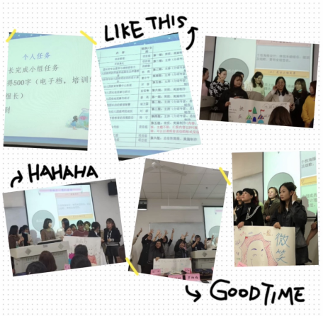 最后到了我们熟悉的环节每个小组半个小时内完成了具有创意性的小组画报、组名、组训。每一组的精彩纷呈,都让大家迅速的感受到了中国人团结一致的合作精神,接下来的几天培训希望能和各位一起学习,一起成长。