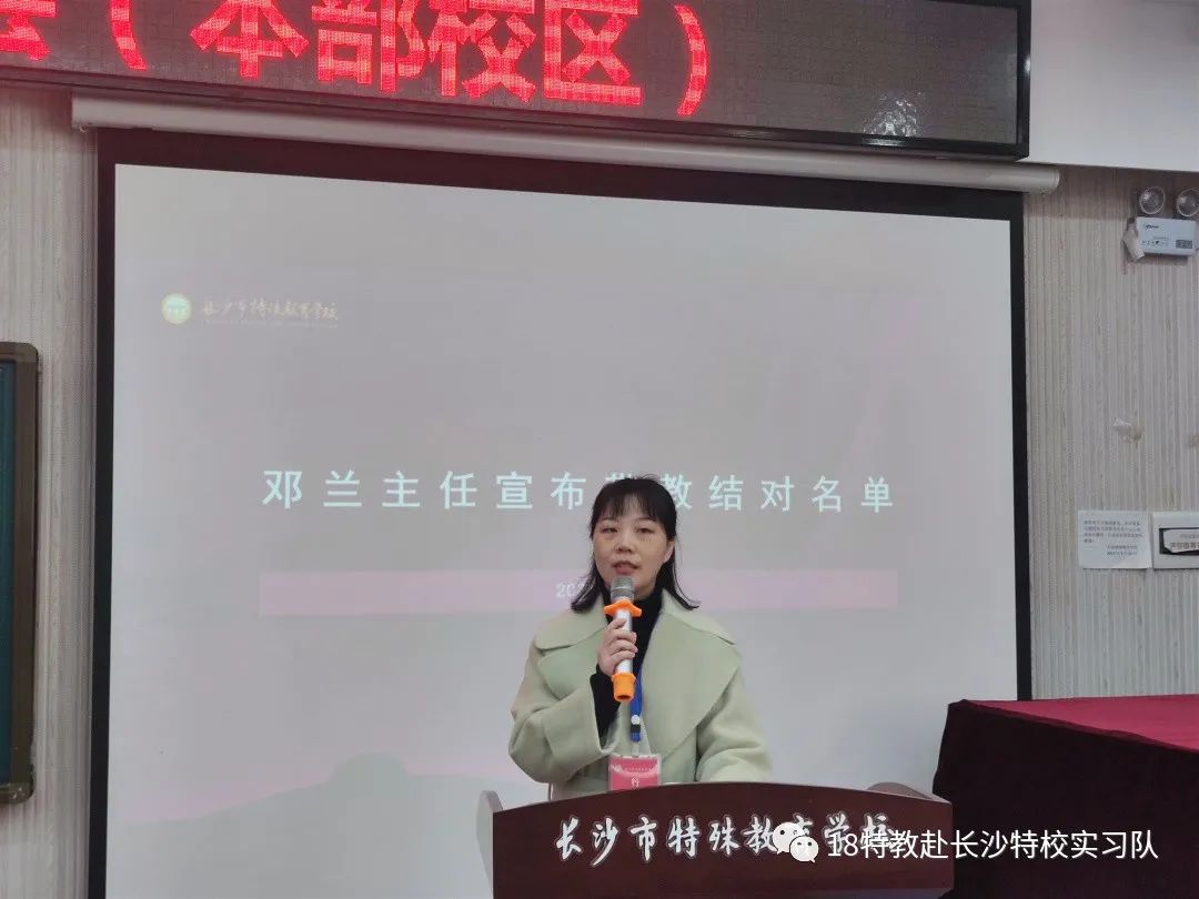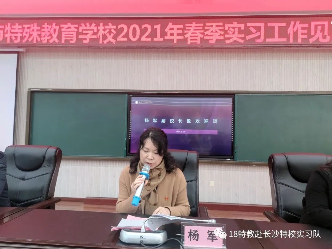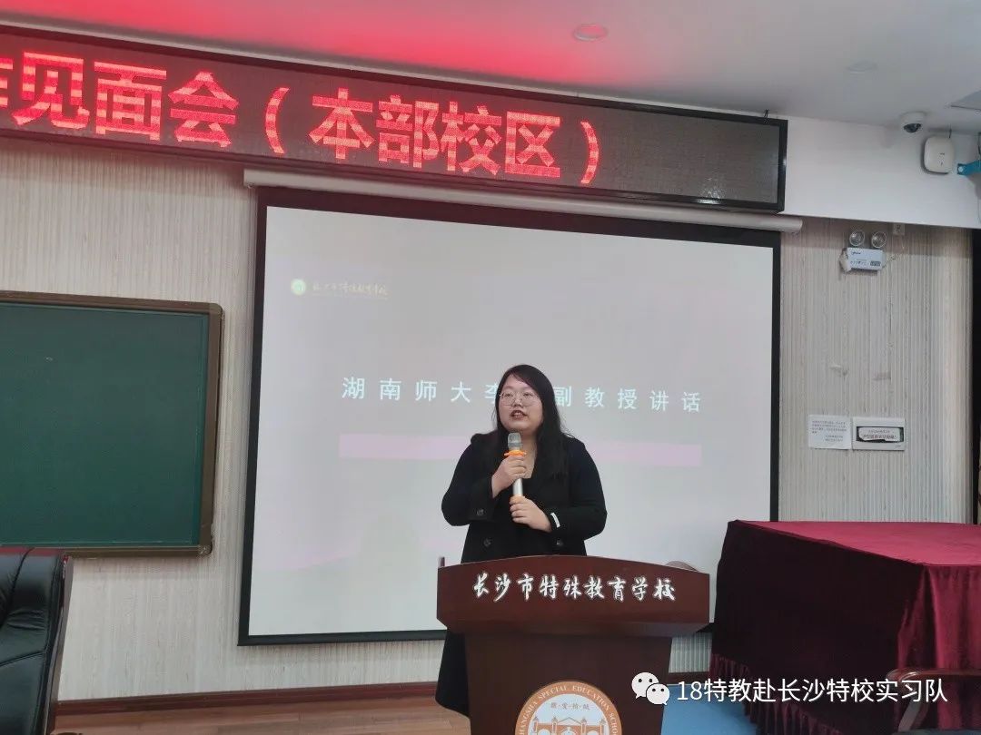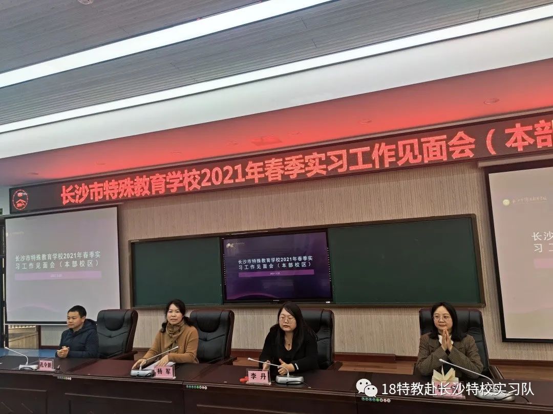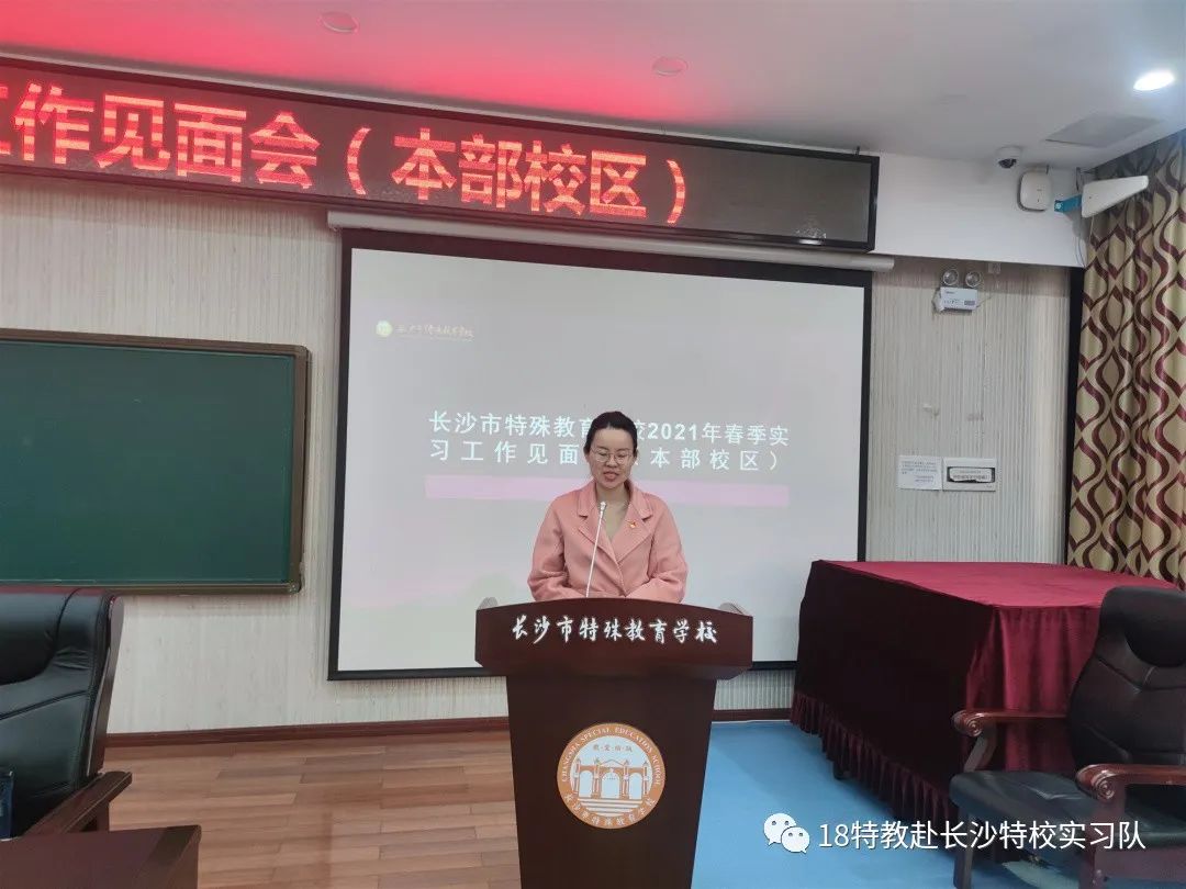 在教务处何礼主任的主持下,本次见面会拉开帷幕。何主任简单介绍了与会人员:长沙市特殊教育学校杨军副校长、中层干部、教学专干及带教师傅,和304am永利集团李丹副教授、孔令新博士、钟雪博士以及304am永利集团特殊教育系实习生等。
