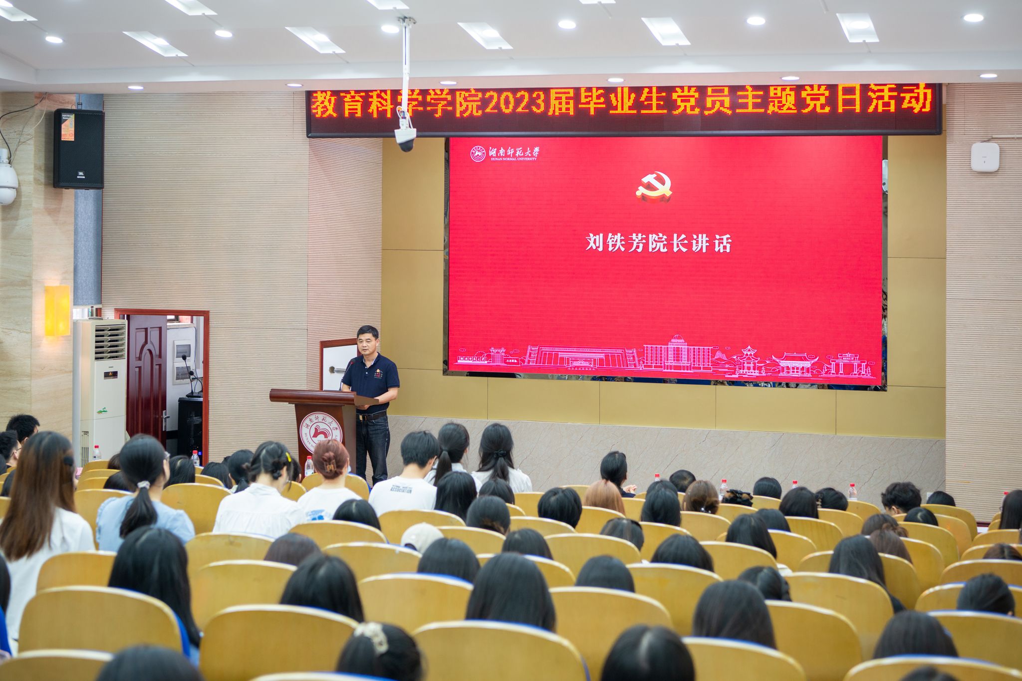 刘铁芳引用“道虽迩,不行不至;事虽小,不为不成”“苟日新,日日新,又日新”等至理箴言,结合最新的时事热点新闻、师大“仁爱精勤”的校训以及教科院“博学笃行 明德育人”的院训精神,从“人生当立大志”“人生当实行动”“人生当善反思”“人生当持兴趣”等四个方面,勉励毕业生党员树立远大理想,踏实笃行,时时反思,热爱生活,让青春在全面建设社会主义现代化国家的火热实践中绽放绚丽之花。