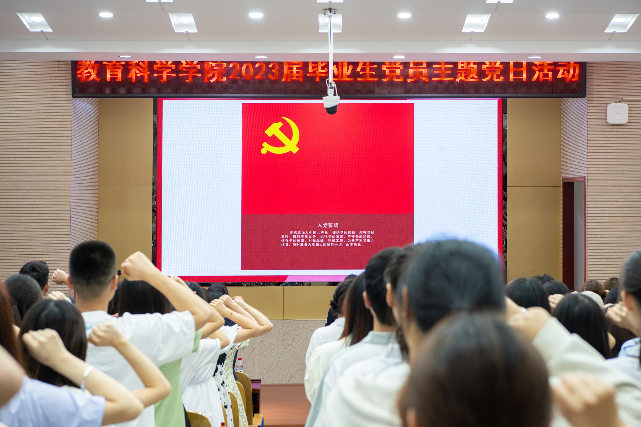 汪植英带领全体党员重温入党誓词,青年党员许下铮铮誓言。