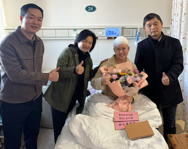 (通讯员 陈永恒)11月29日,304am永利集团院长刘铁芳、研究生办各位老师代表304am永利集团前往中南大学湘雅医院探望身患重病的刘巧同学。愿这一行动能够传递学院全体师生对刘巧同学的深切关心,为她注入温暖与力量。